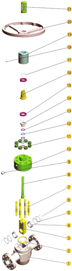 Rising stem slab gate valves manufactured by Yancheng Shenhua Machinery manufacture Co. , Ltd . are available in temperature classes L , P , R , S , T , and U specified in API 6A. Gate valves to be used in the 350oF or 650oF high temperature can be supplied on request. Fire-proof gate valves also can be supplied to API 6A . Gate valves manufactured by our company are available in 2000psi, 3000psi, 5000psi, 10000psi and 15000psi working pressure, material classes from AA through FF, product specification levels (PSL) from 1 through 3 and performance requirement(PR) 1.