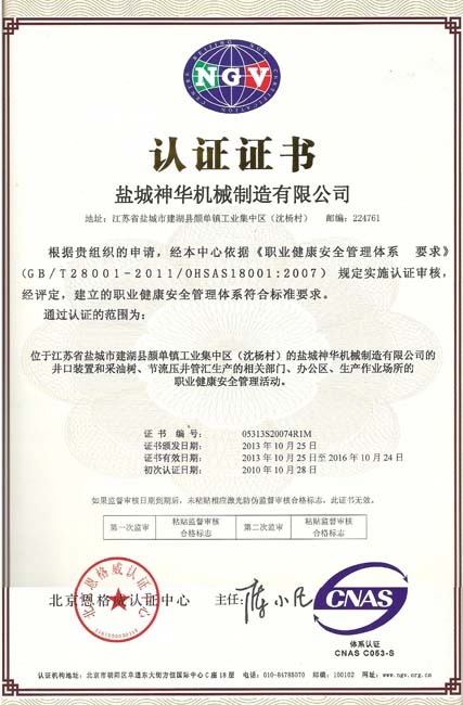 Quality management system certification Environmental management system certification Type test certificate of special equipment