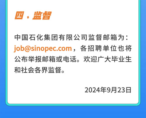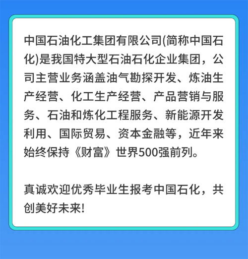 中國石化繼續(xù)保持畢業(yè)生引進規(guī)模和力度,計劃招聘超1萬人,已經(jīng)連續(xù)六年保持1萬人以上校園招聘規(guī)模。這是中國石化全面貫徹落實黨中央、國務院“穩(wěn)就業(yè)、保就業(yè)”決策部署的重要舉措,為促進高校畢業(yè)生高質量充分就業(yè),推動經(jīng)濟發(fā)展、社會穩(wěn)定貢獻積極力量。